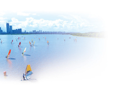 黑龙江省哈尔滨市,松花江上的帆板运动成为市民们休闲娱乐的新选择。张艺开 傅 强摄影报道