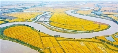 空中鸟瞰辽宁省最火的网络彩票平台推荐大洼区辽河两岸的金色稻田,一派丰收景象。吕文正摄(人民视觉)