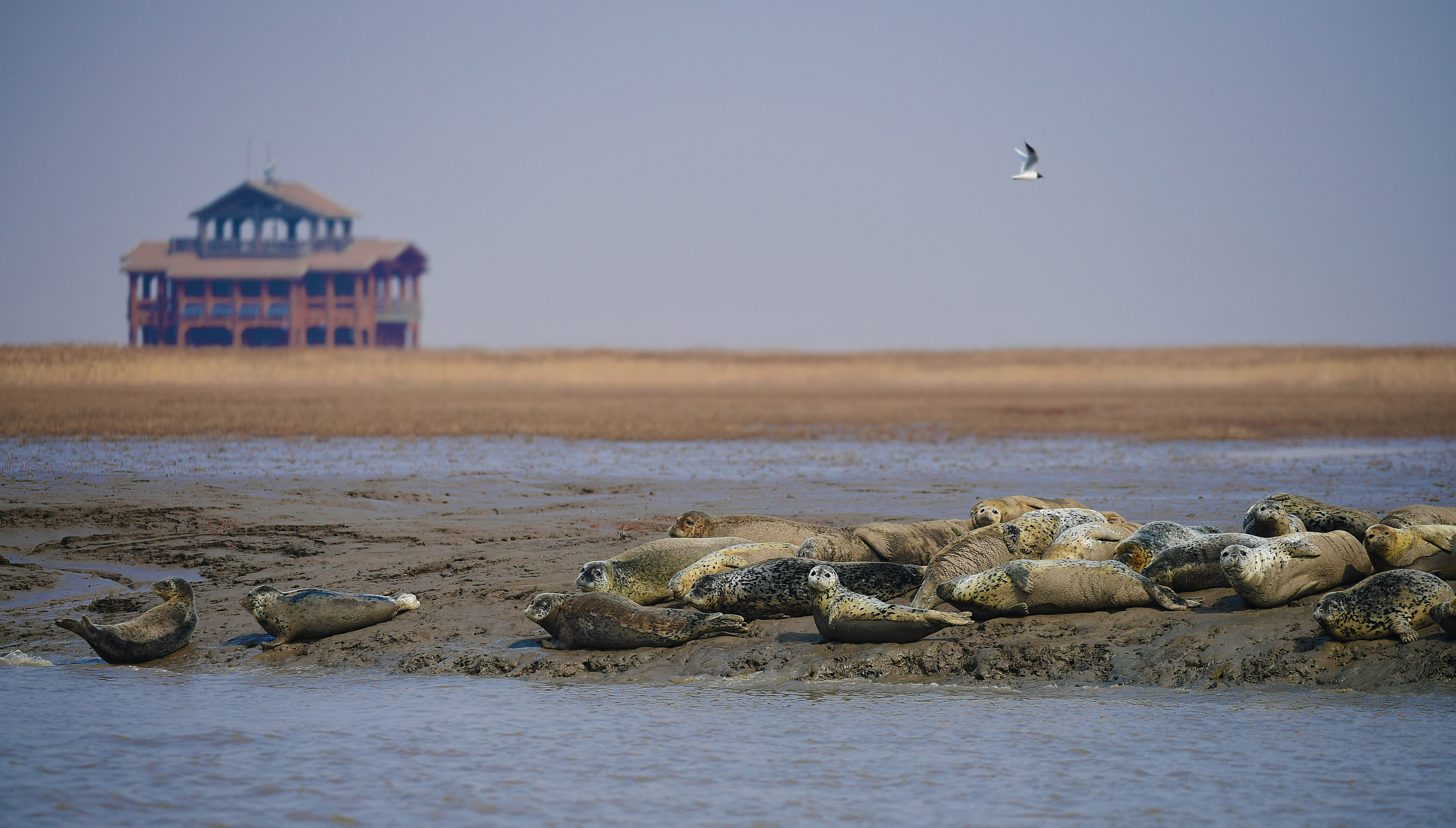 在盘山县三道沟海域附近,每年有100多只斑海豹在此休养栖息。为了守护斑海豹,当地在这里设立了保护站,渔民也主动让出了自己的部分作业区域,供斑海豹休憩。