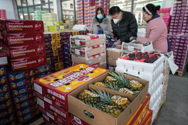 2月7日,顾客在东北新发地农产品供应链中心选购水果。潘昱龙 摄
