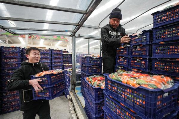 2月7日,商户在搬运蔬菜。昱龙 摄