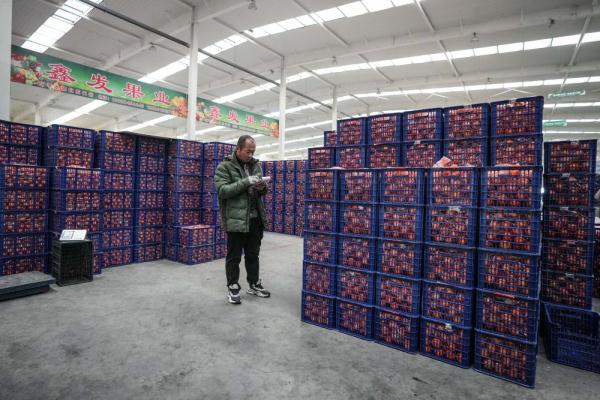 2月7日,商户在东北新发地农产品供应链中心内清点货品。潘昱龙 摄