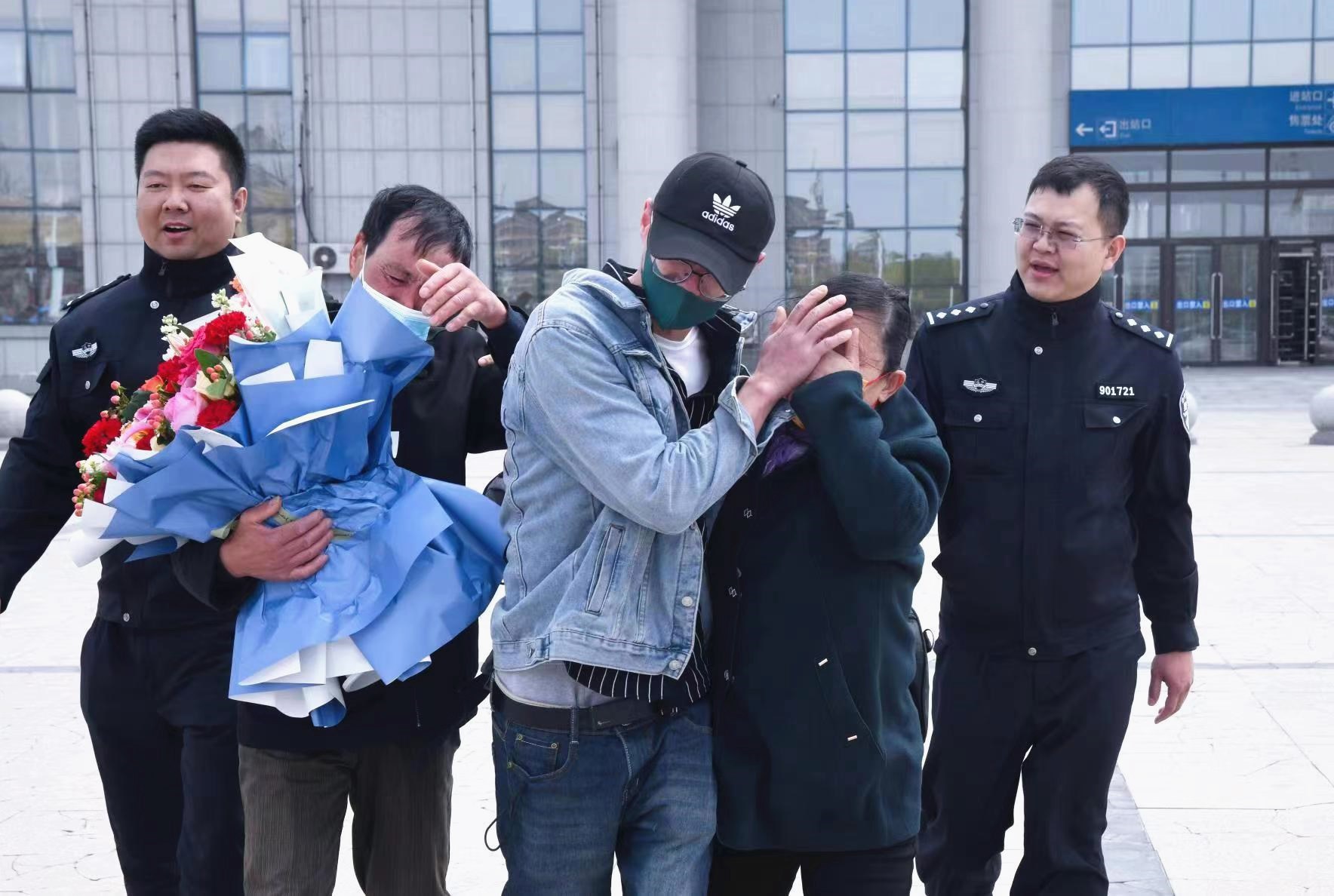 4月27日12时,由北京发往盘锦的D825次列车驶入盘锦北站,旅客陆续下车。王磊拉着行李箱,跟随离站人群,缓缓走向出站口。远远看到在民警陪伴下前来接站的父母,招手示意之间,他眼眶湿润了……