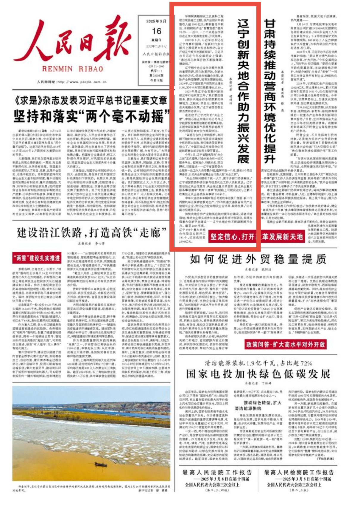 人民日报头版点赞:辽宁创新央地合作助力振兴发展