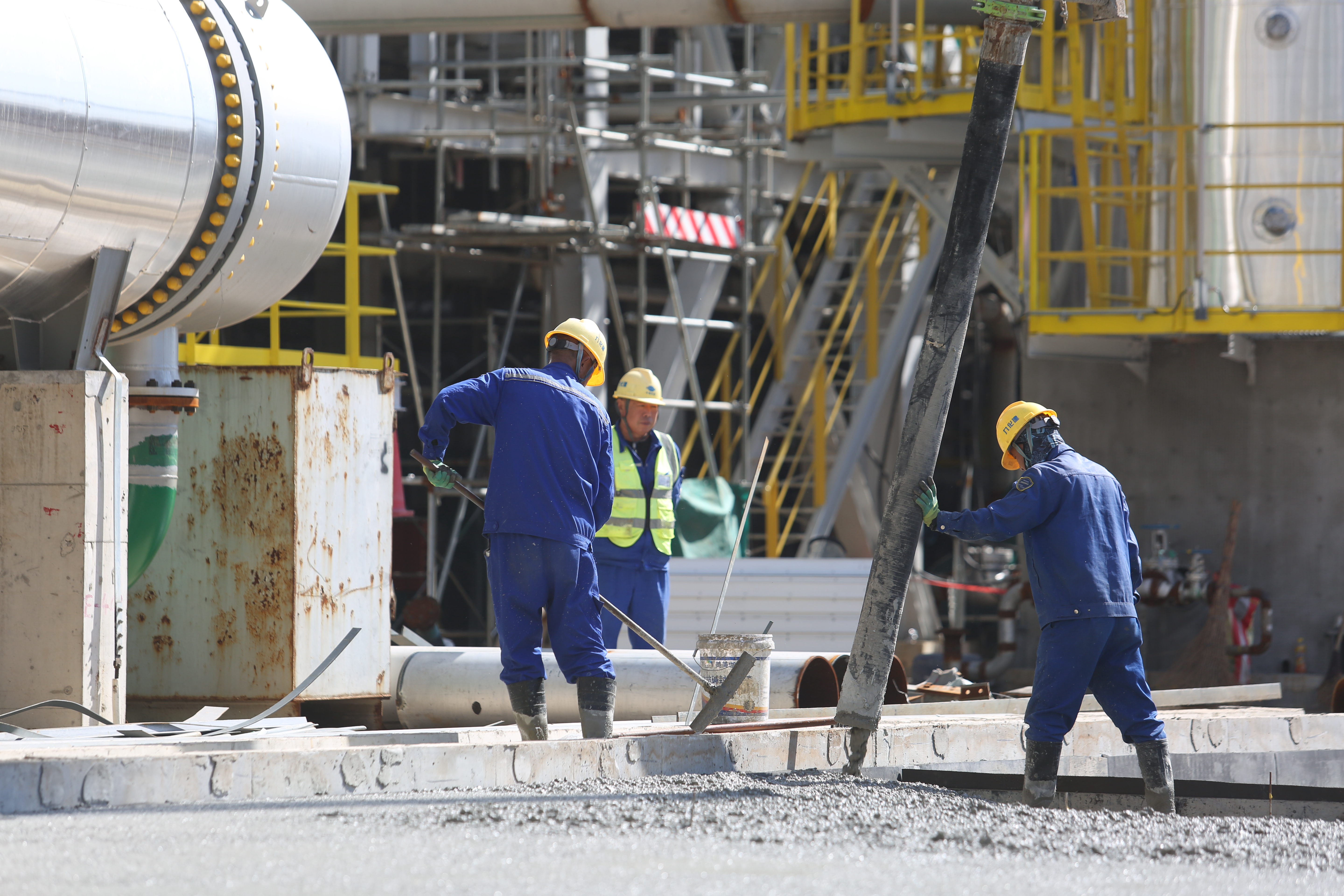 306、307码头已正式交付使用,铁路专用线顺利完成接轨,为项目后续原料运输及物流保障奠定坚实基础。与此同时,主装置管道试压工作有序推进,先期投用的公辅设施进入收尾阶段,动力站开工点火目标成为当前攻坚的核心任务之一。