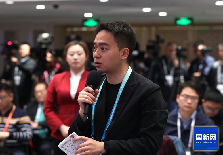 中央广播电视总台央视记者提问(刘健 摄)
