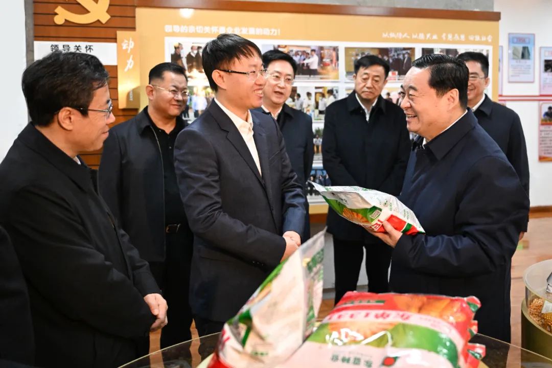 省委书记、省人大常委会主任郝鹏在辽宁东亚种业有限公司展厅详细了解企业发展情况。