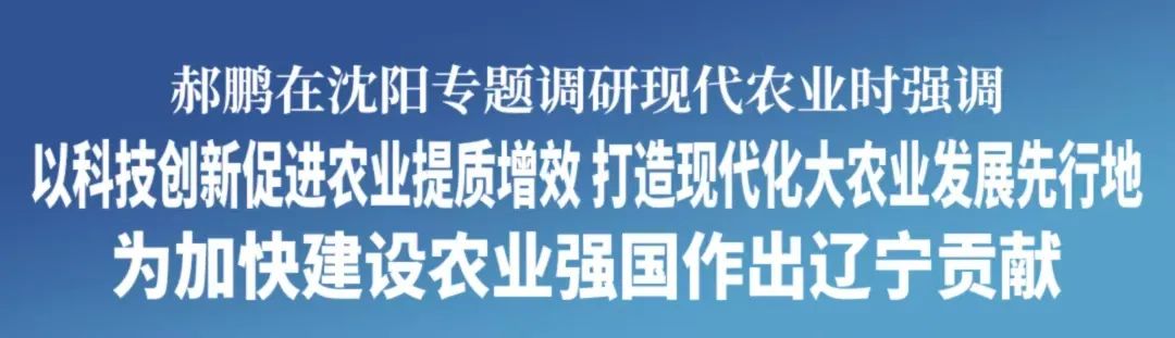 郝鹏在调研中强调,习近平总书记指出,要以发展现代化大农业为主攻方向,加快推进农业农村现代化。辽宁粮食、畜牧、水产、蔬菜、水果等各类农产品供给丰富,发展现代化大农业条件优越、潜力巨大。要坚持科技创新和产业创新深度融合,加速农业科技成果转化,赋能现代农业高质量发展。要大力发展乡村特色产业,培育壮大农业企业,千方百计推动农业增效益、农村增活力、农民增收入。要加快打造特色精品品牌,生产更多更好绿色安全优质农产品满足消费需求。要抢前抓早备春耕,落实好各项强农惠农政策,确保种子、化肥等物资供应充足、价格平稳,稳定粮食播种面积,为全年农业丰收打下坚实基础,当好国家粮食稳产保供“压舱石”。