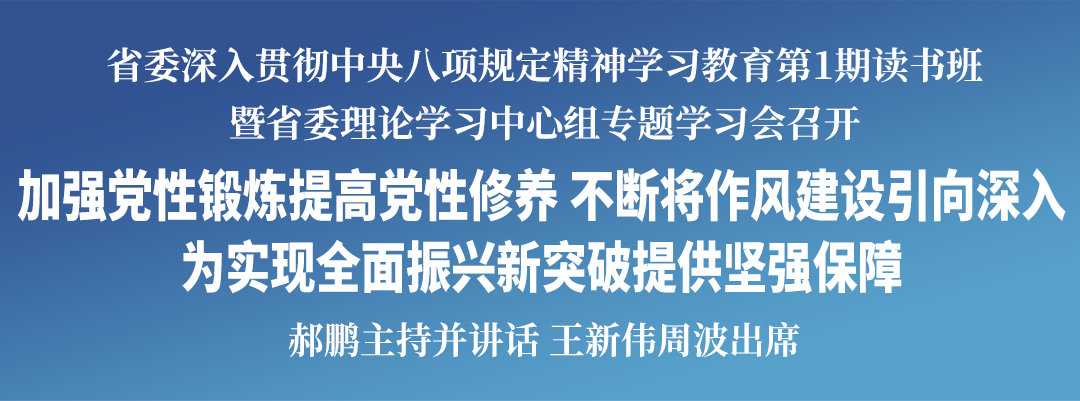 3月27日,省委用1天时间召开深入贯彻中央八项规定精神学习教育第1期读书班暨省委理论学习中心组专题学习会,深入学习习近平总书记关于加强党的作风建设的重要论述,认真学习贯彻中央八项规定及其实施细则精神,以作风建设新成效保障全面振兴取得新突破。省委书记郝鹏主持并讲话。省委副书记、代省长王新伟,省政协主席周波出席。