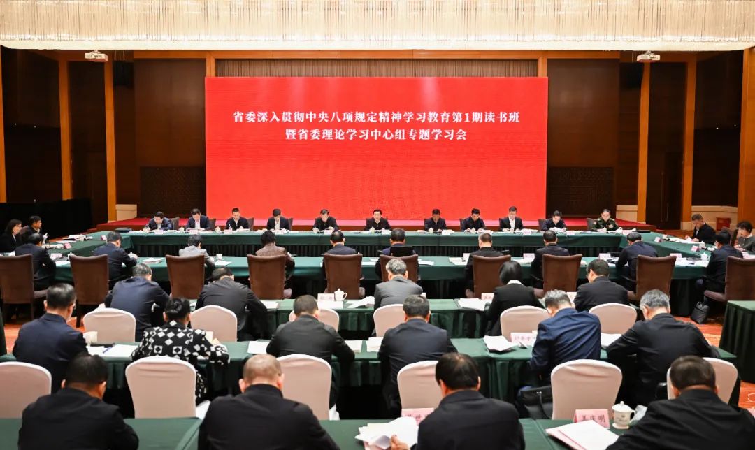 省委深入贯彻中央八项规定精神学习教育第1期读书班暨省委理论学习中心组专题学习会召开。