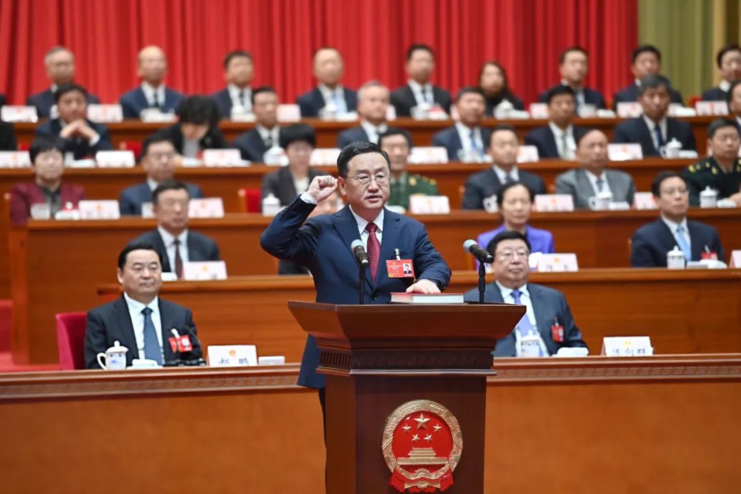 郝鹏在讲话中代表大会主席团向王新伟同志表示祝贺,希望王新伟同志牢记誓言、践行承诺,不辱使命、不负重托,团结带领省政府一班人,认真贯彻落实习近平总书记重要指示精神和党中央、国务院决策部署,恪尽职守、真抓实干,敢于斗争、担当作为,推动各项工作再上新台阶。