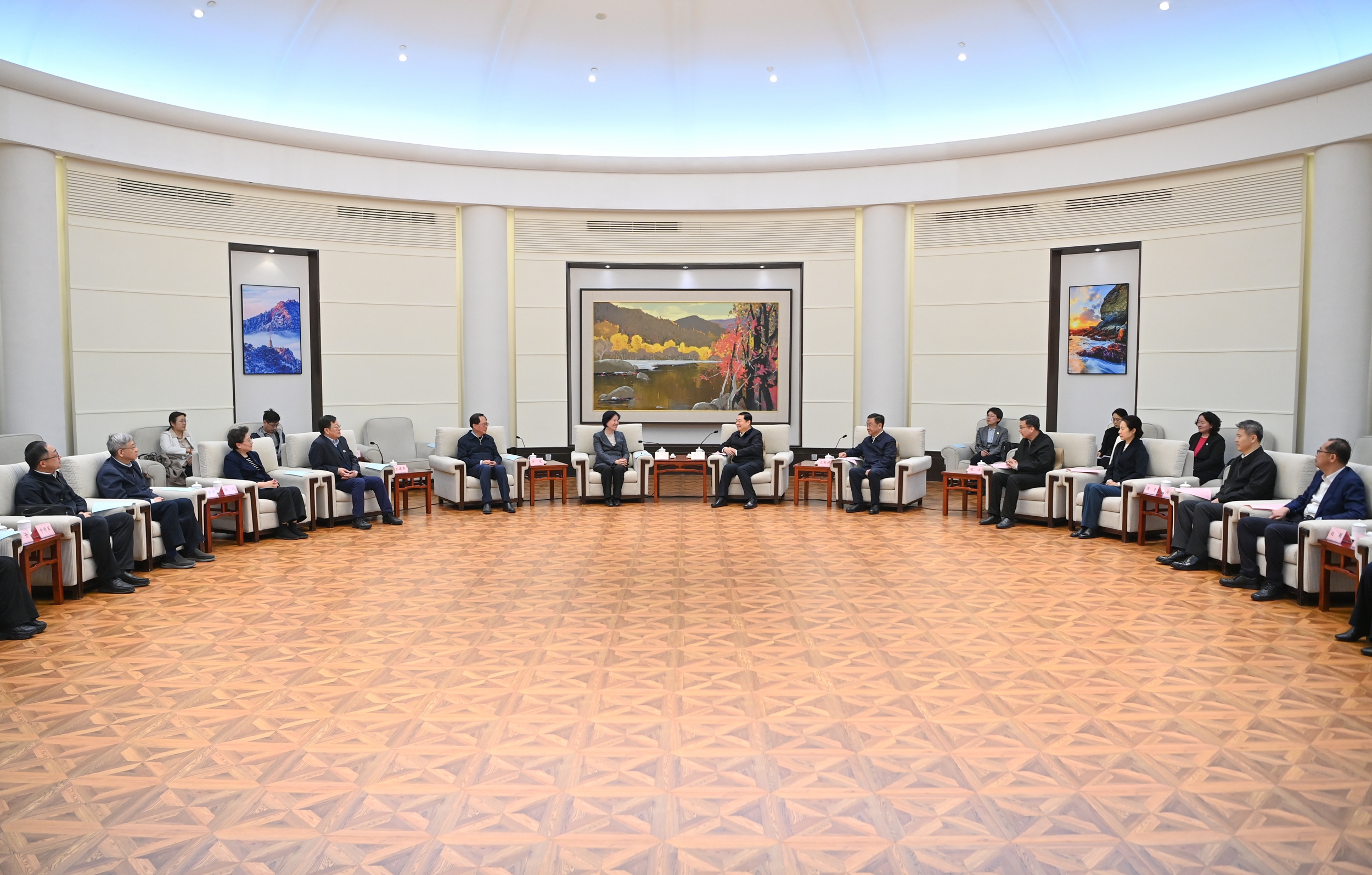 省委书记、省人大常委会主任郝鹏,省委副书记、省长王新伟,省政协主席周波拜会全国政协副主席沈跃跃。